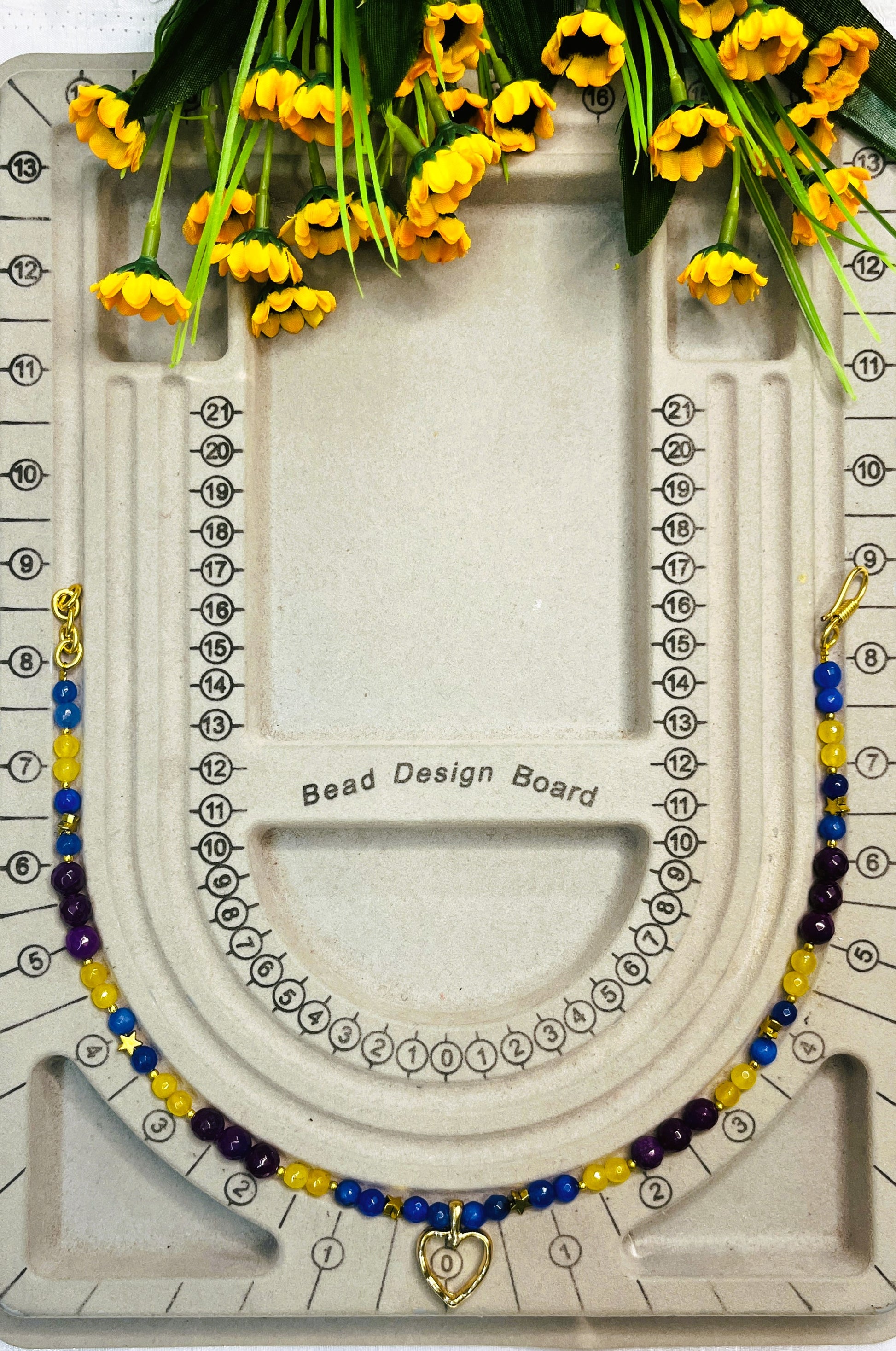 A charming heart-shaped pendant that adds a soft, elegant focal point to the colourful bead design.