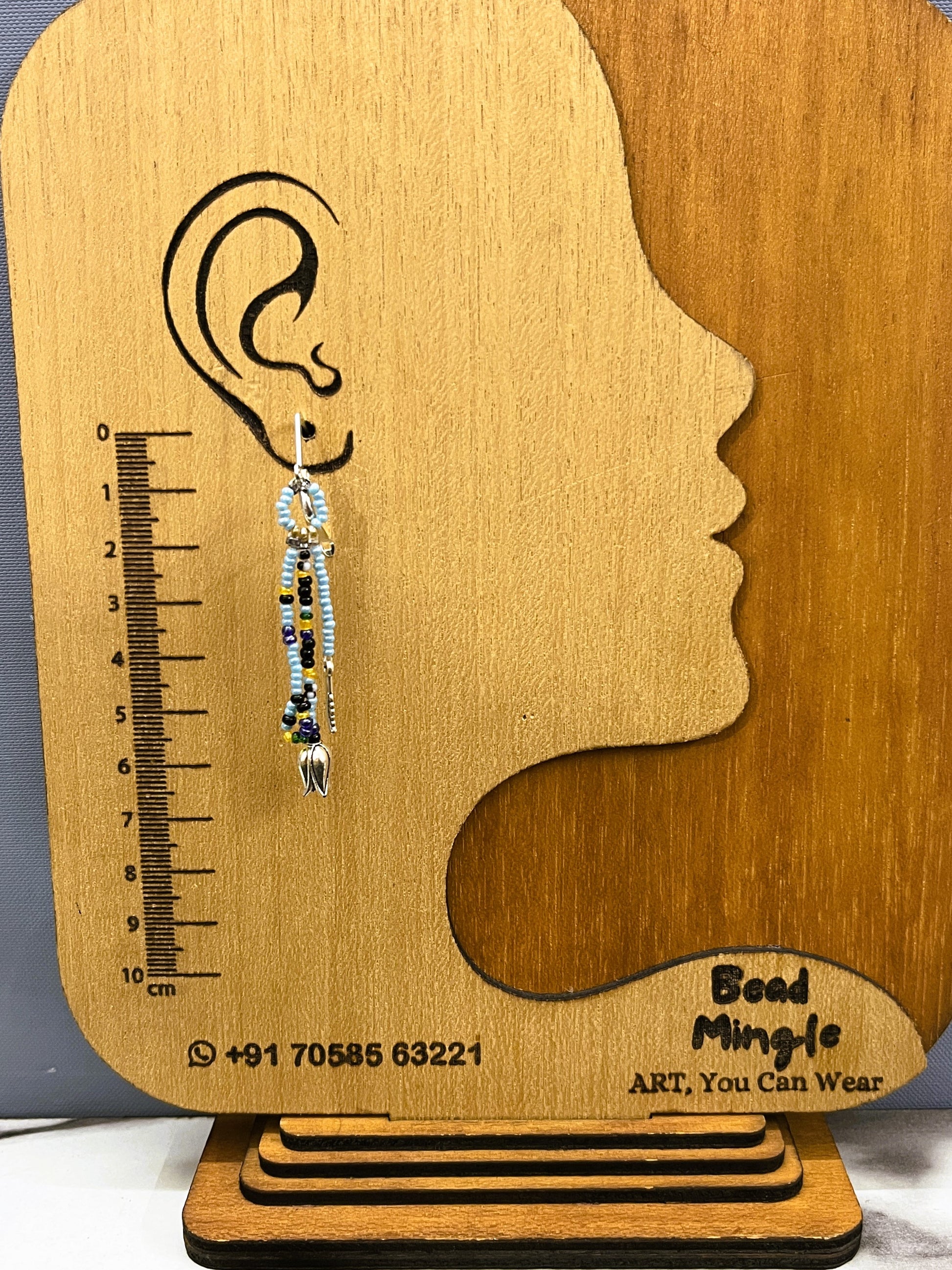 A handmade pendant-style latkan with hanging seed bead charms, adding bold movement and unique character.