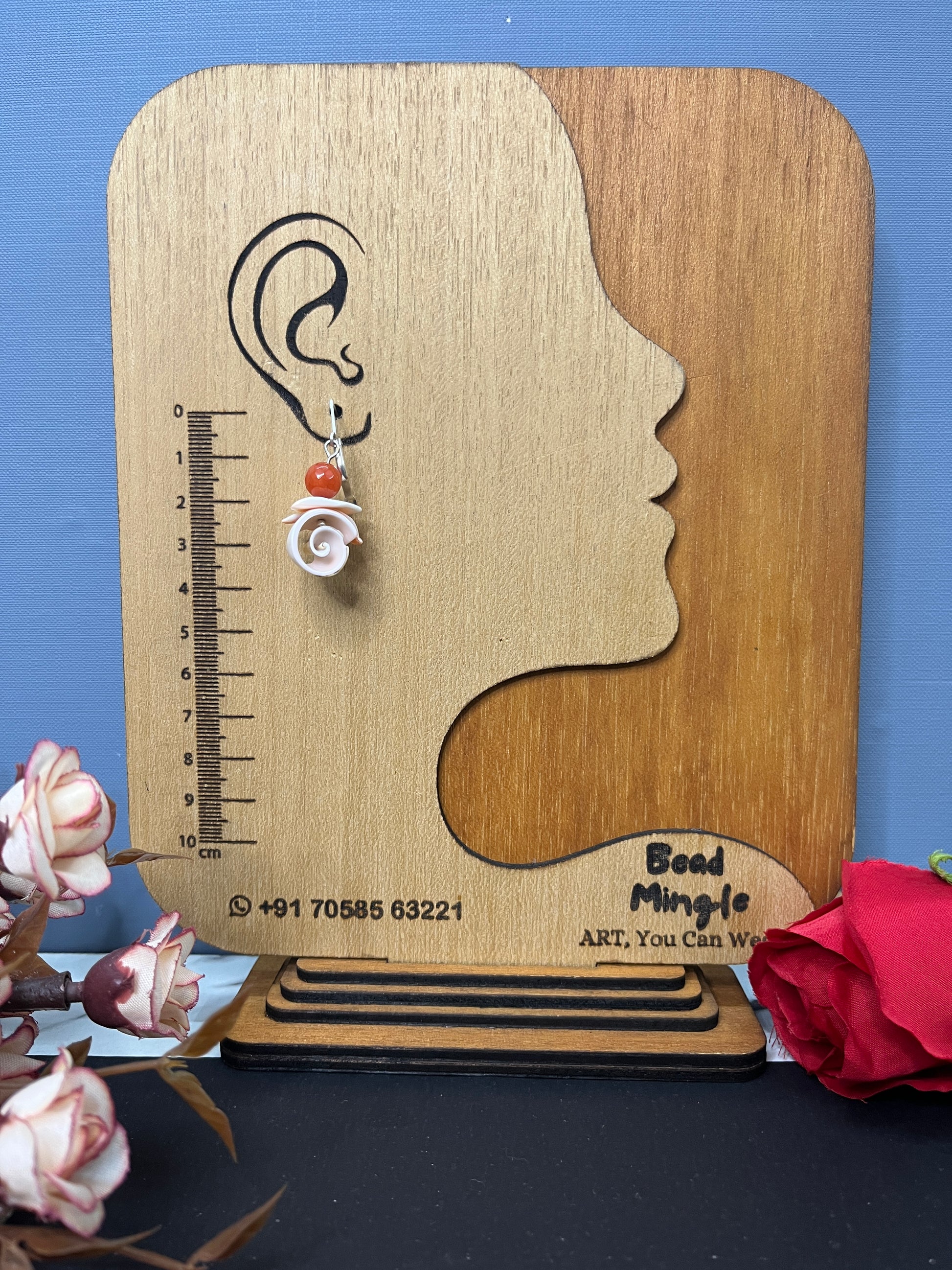 A graceful necklace blending carnelian agate beads with a beautifully crafted rose centerpiece. The soft-toned petals add elegance and charm, making it suitable for both traditional and modern outfits. Paired with matching earrings for a refined finish.