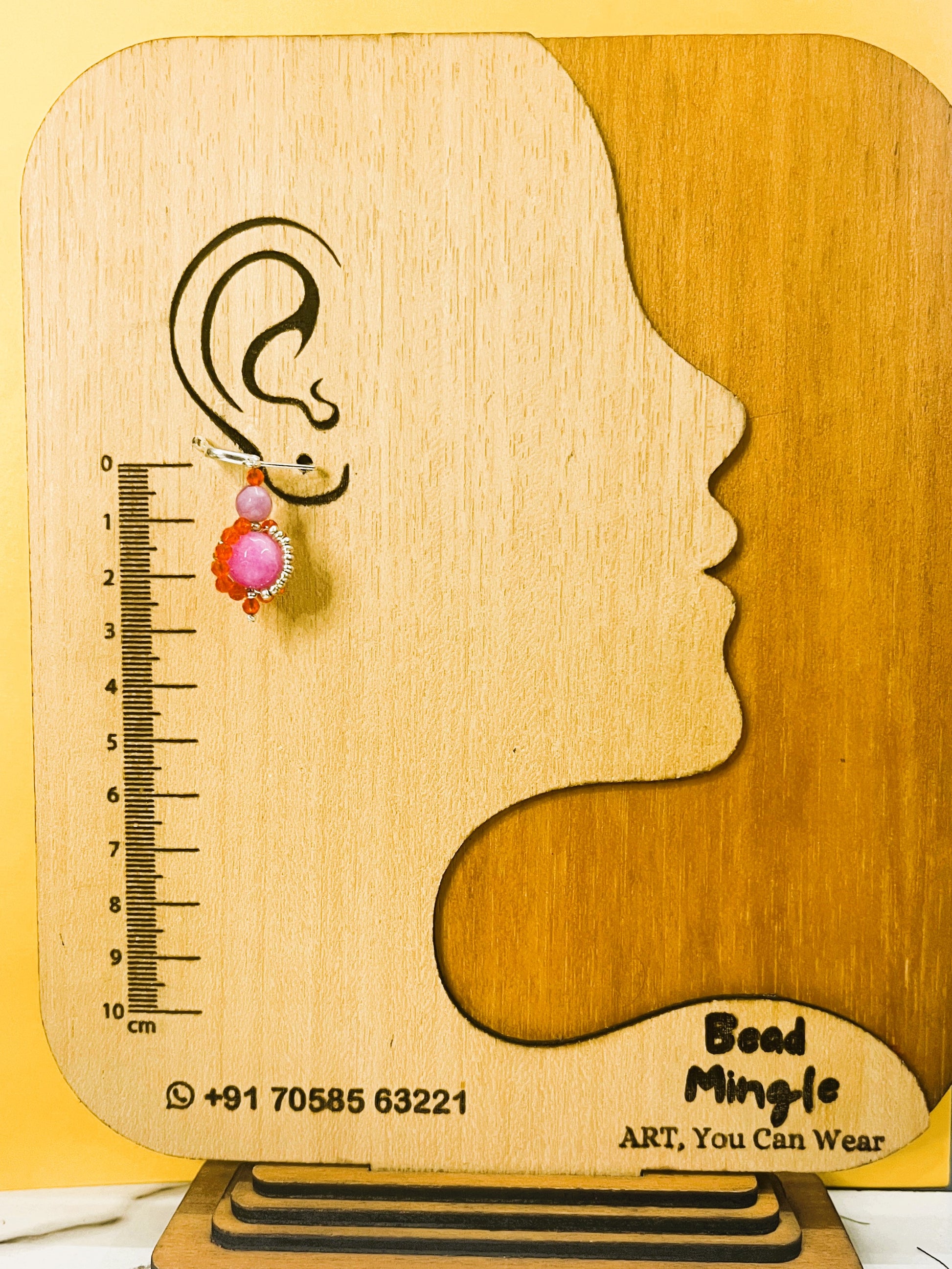 A handcrafted layered necklace designed with soft pink and vibrant orange beads, paired with matching earrings.